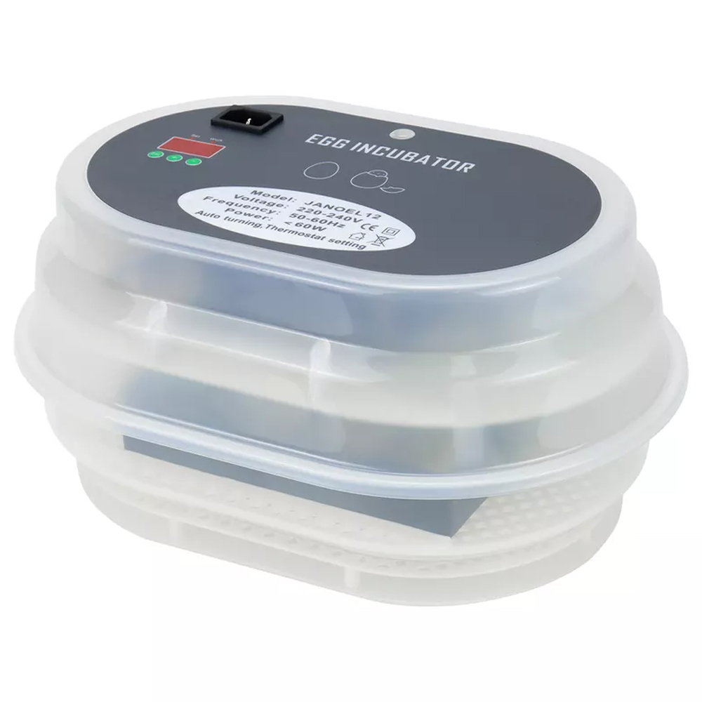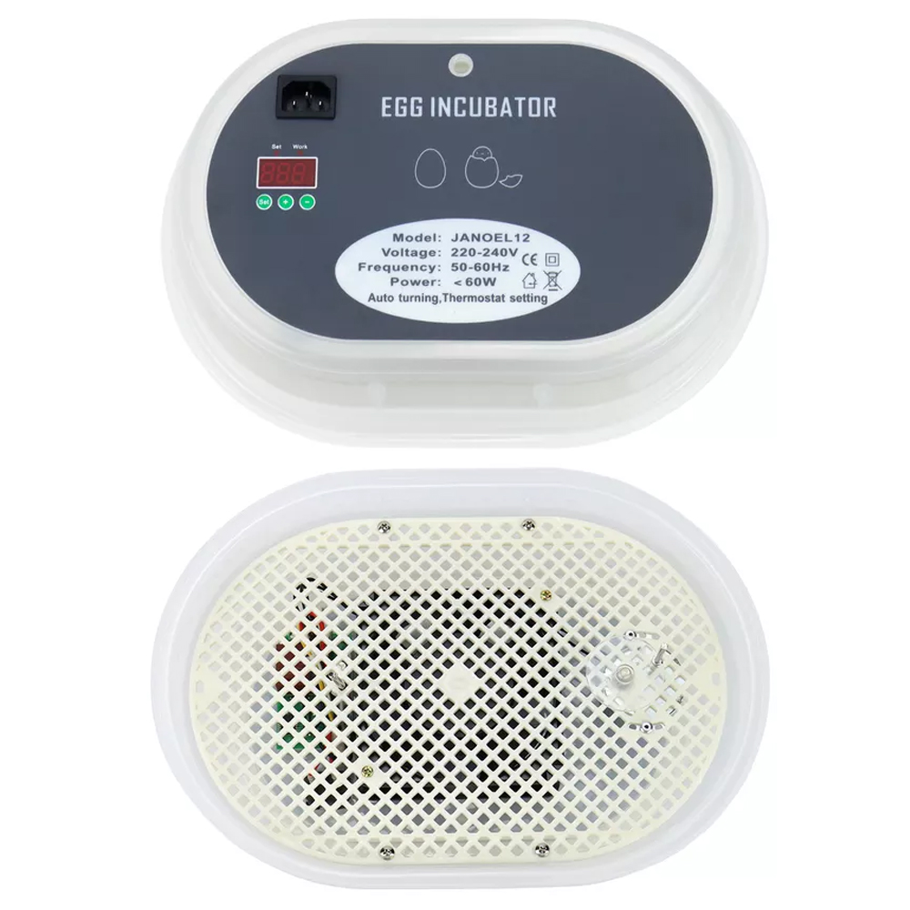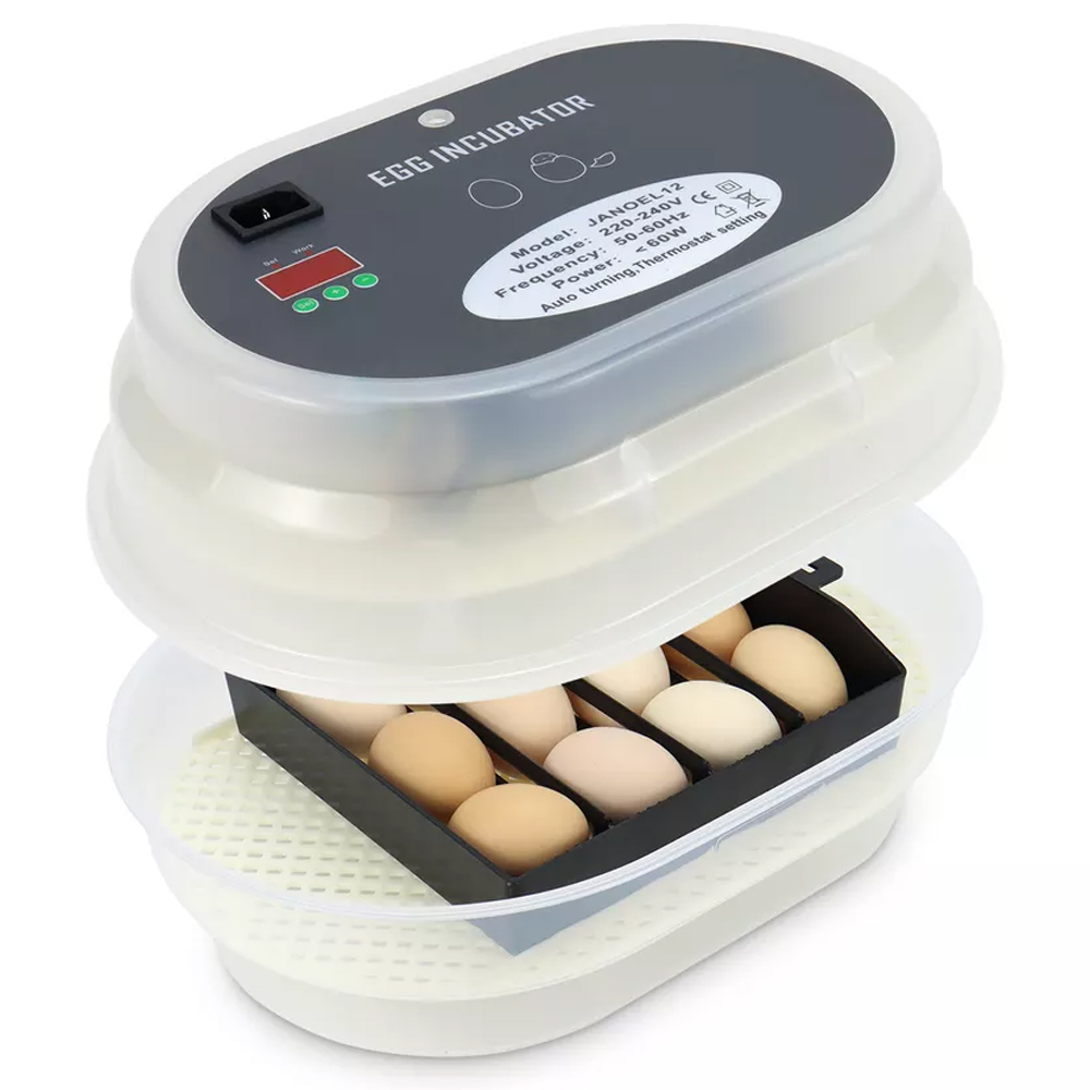 Маленький автоматический инкубатор Janoel 12 подходит для всех видов яиц.