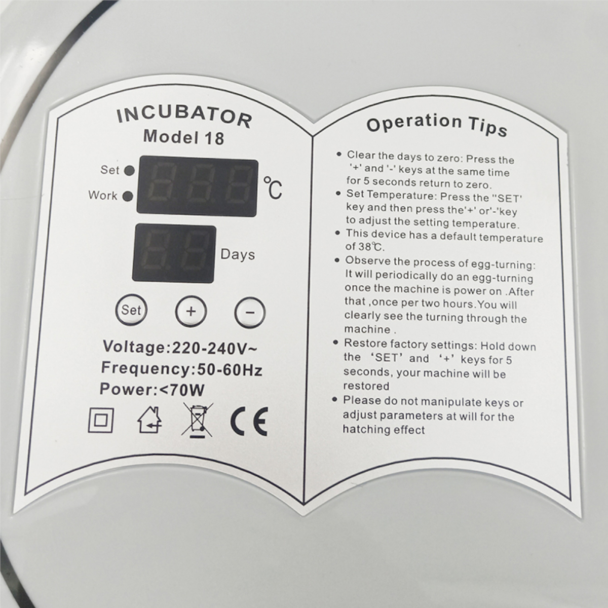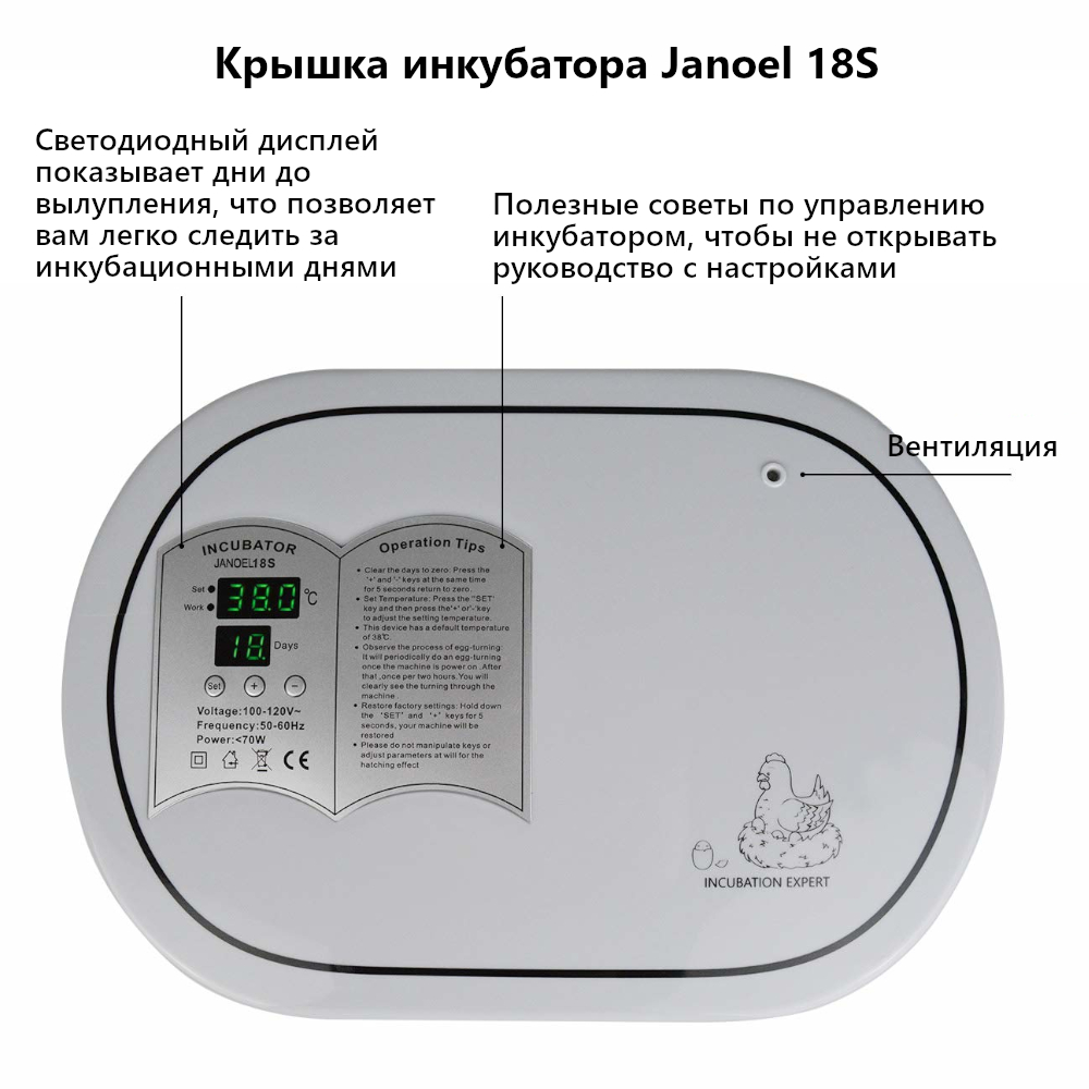 Инкубатор Janoel 18S для всех видов яиц с автоматическим поворотом. Все части инкубатора собраны качественно, без щелей и зазоров. Легко и быстро моется, грязь и неприятный запах не пропитывает корпус.
