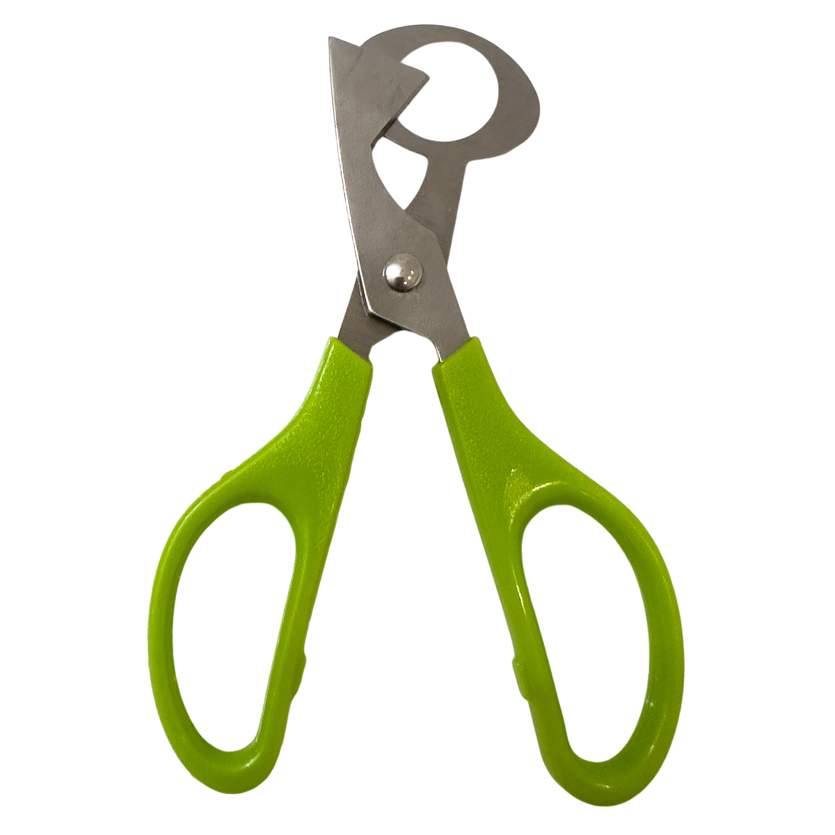 Специальные ножницы для вскрытия перепелиных яиц. Длина 14 см. Ручки изготовлены из пластика зеленого цвета. Острое стальное лезвие. Диаметр отверстия 20 мм.