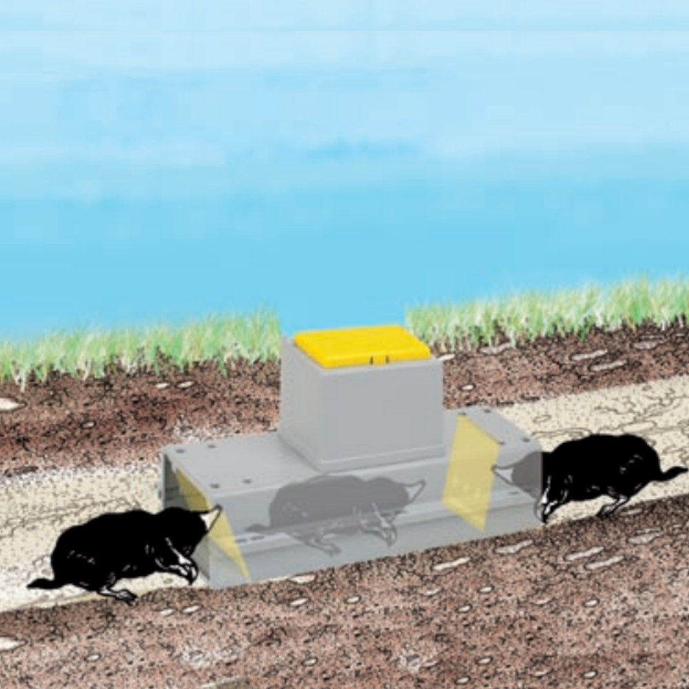 Устанавливается, непосредственно в кротовый ход. Камеру ловли закапывают в землю: оба ее конца оснащены створками свободно пропускающими крота во внутрь, и блокирующими его выход специальными ступорами.