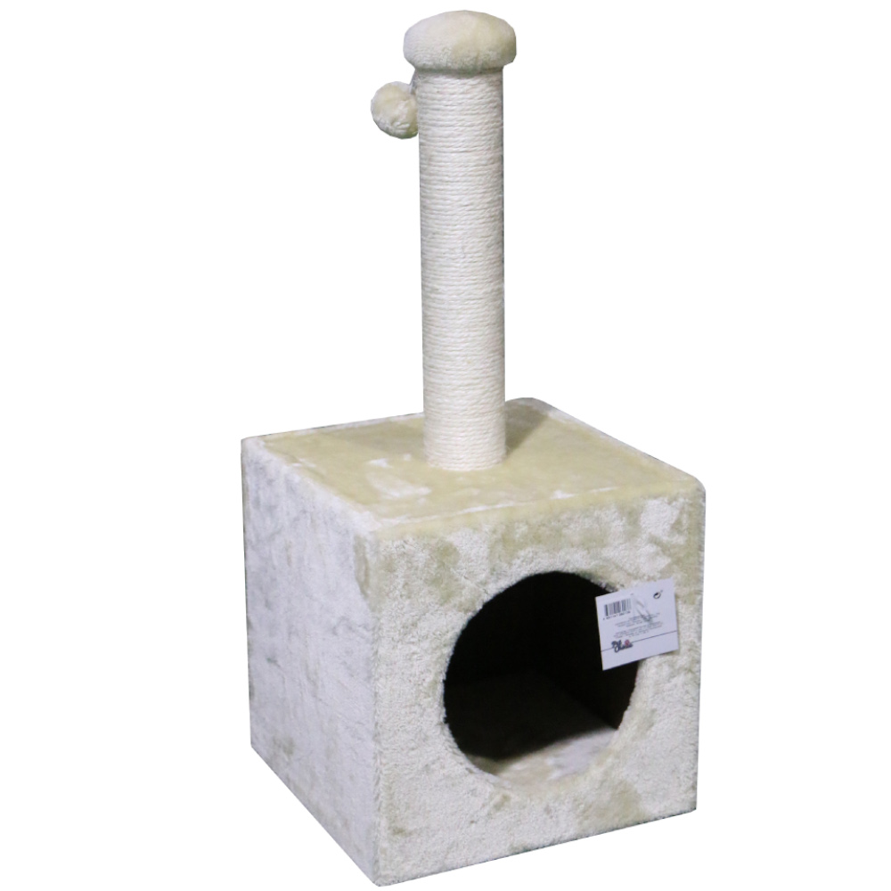 Устойчивый домик-когтеточка оборудован сизалевой точилкой и уютным меховым домиком. Сизалевая когтеточка позволит вашему любимцу вовремя удалять ороговевший слой когтей, не оставляет мусора. Плюшевый шарик-игрушка поможет привлечь внимание питомца.