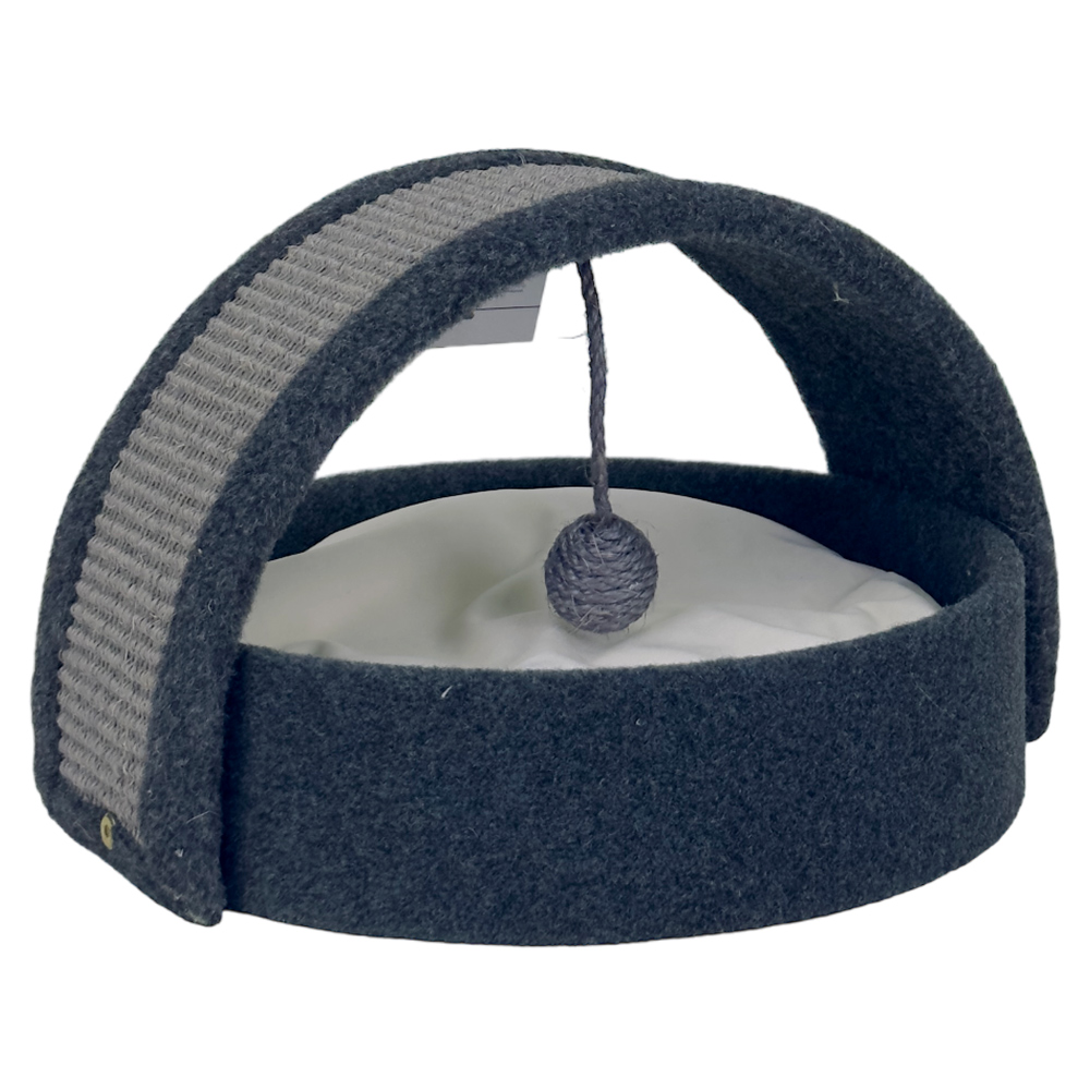 Удобный лежак с игрушкой внутри не даст заскучать пушистому питомцу.