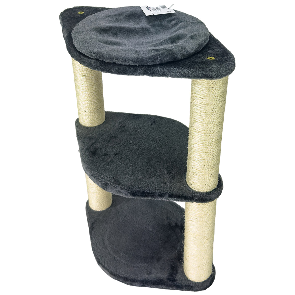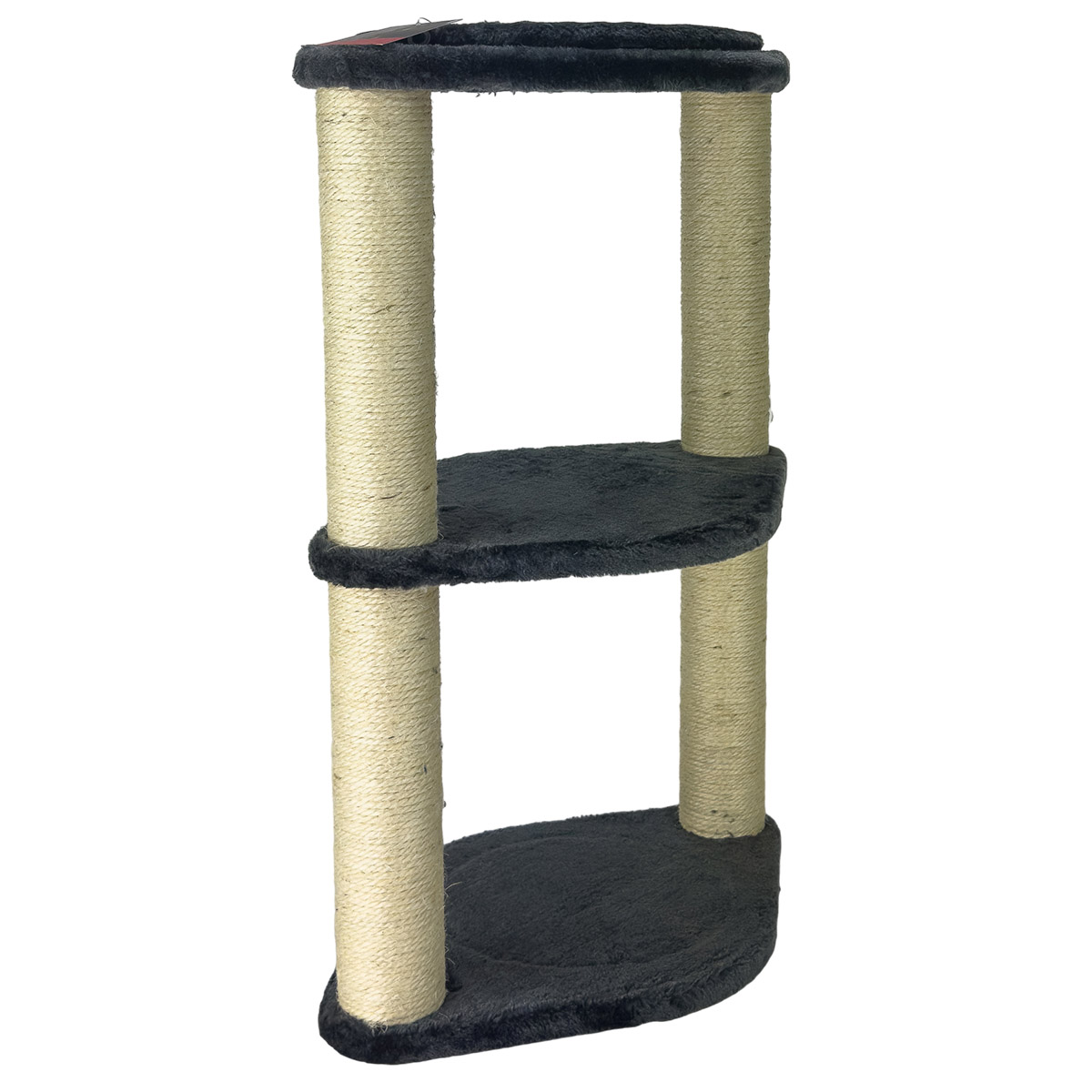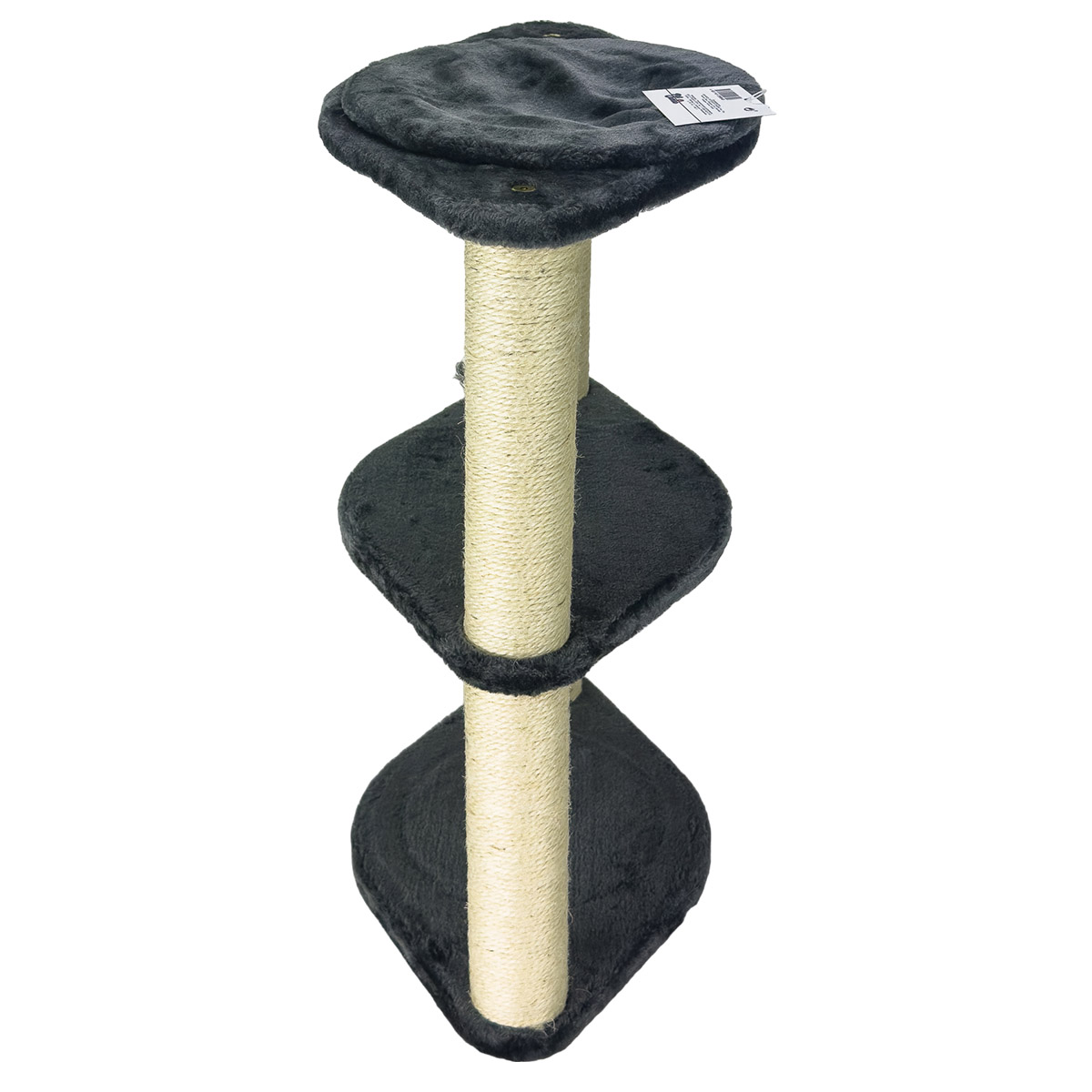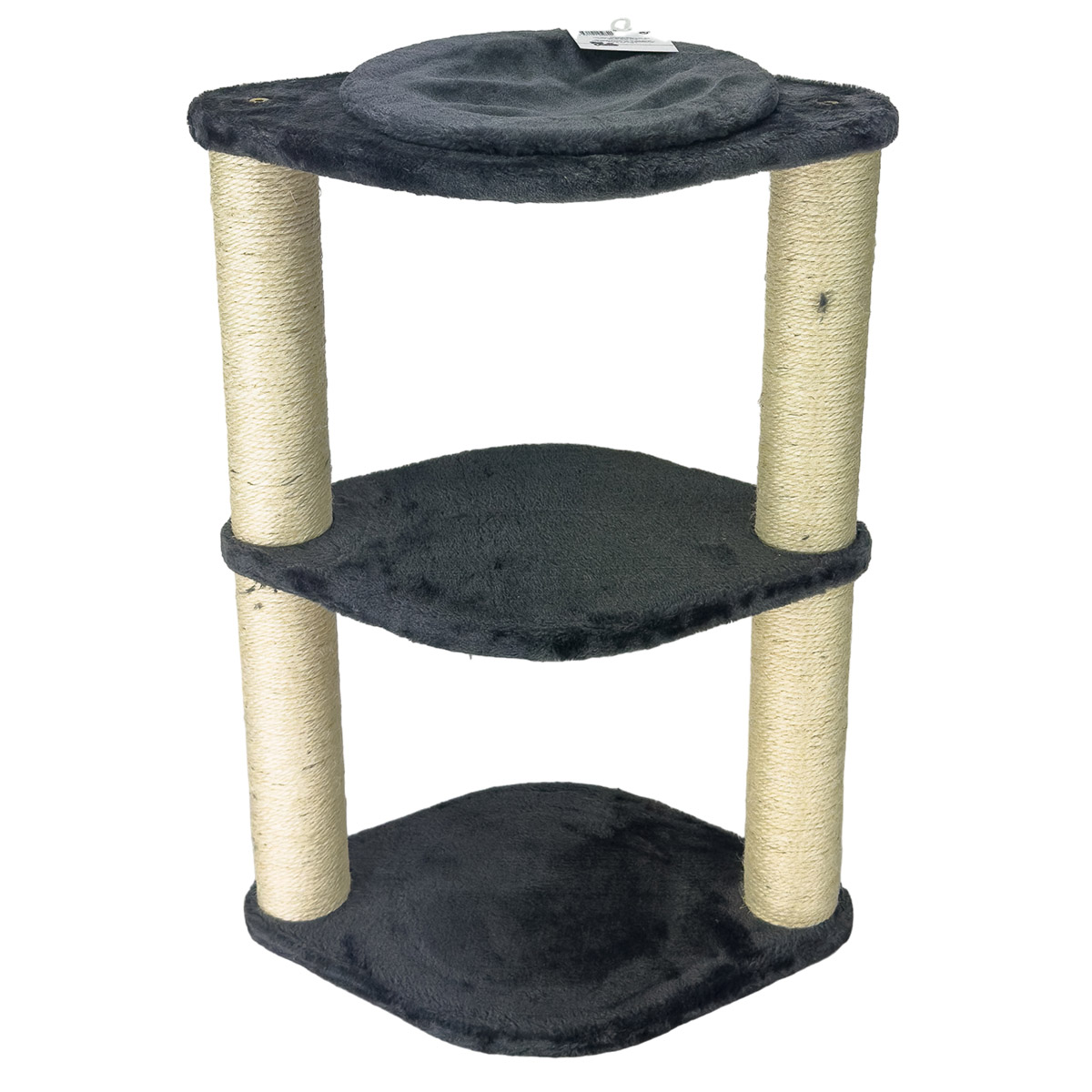 Трехъярусная когтеточка-лежак - это прекрасная обзорная площадка для пушистого любимца. Высокие столбики обвитые плотной, жесткой сизалью препятствуют развитию стресса у животного и чрезмерному разрастанию когтя. Натуральный материал, не оставляет мусора.