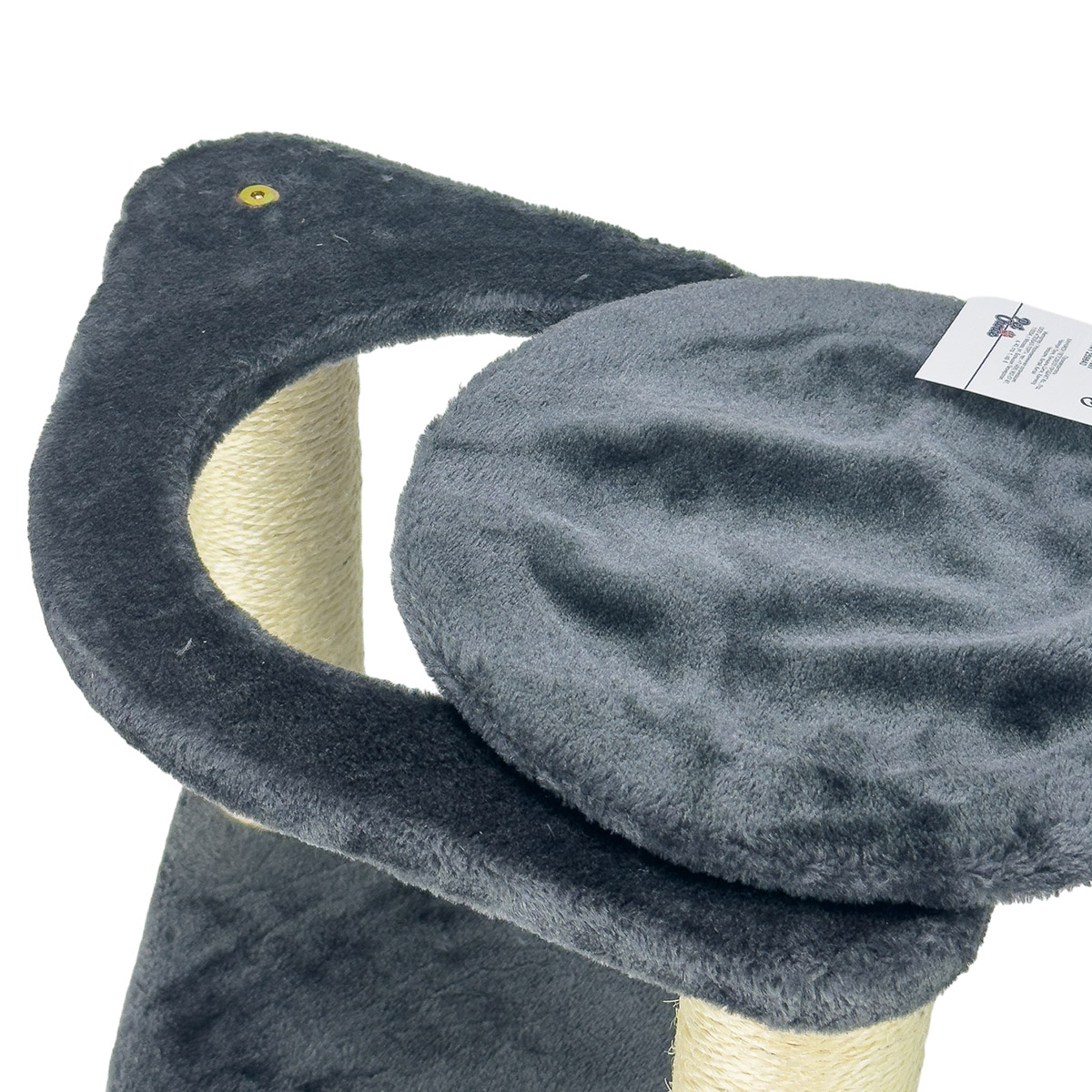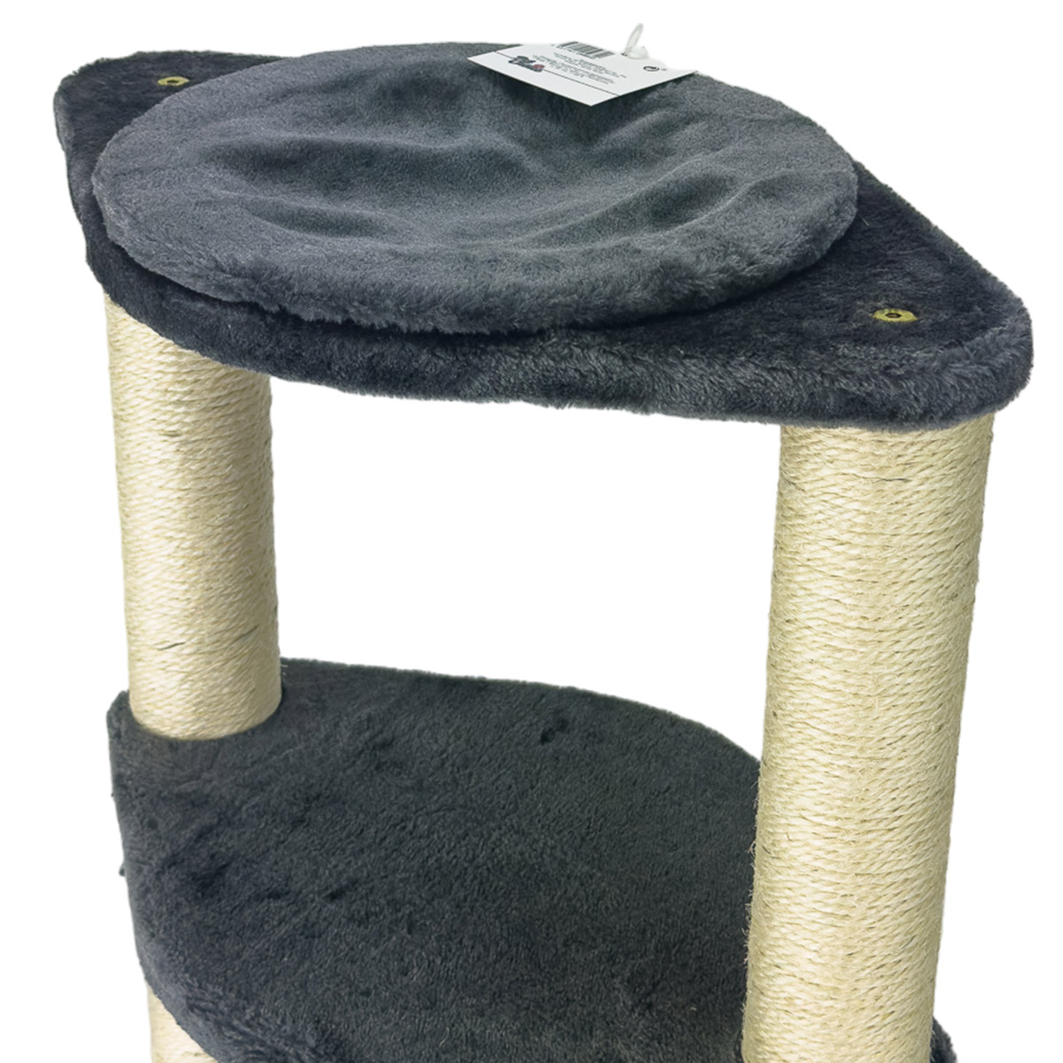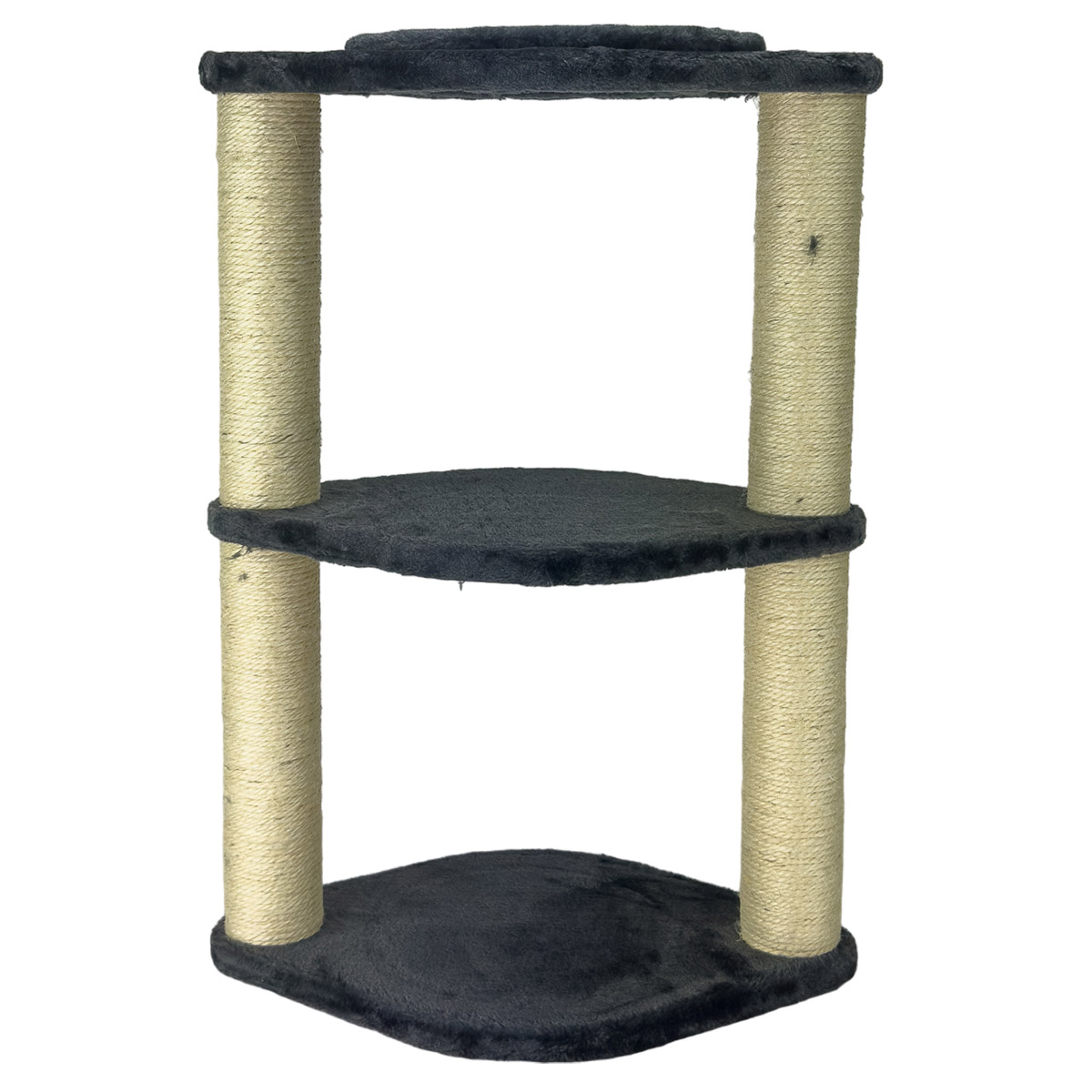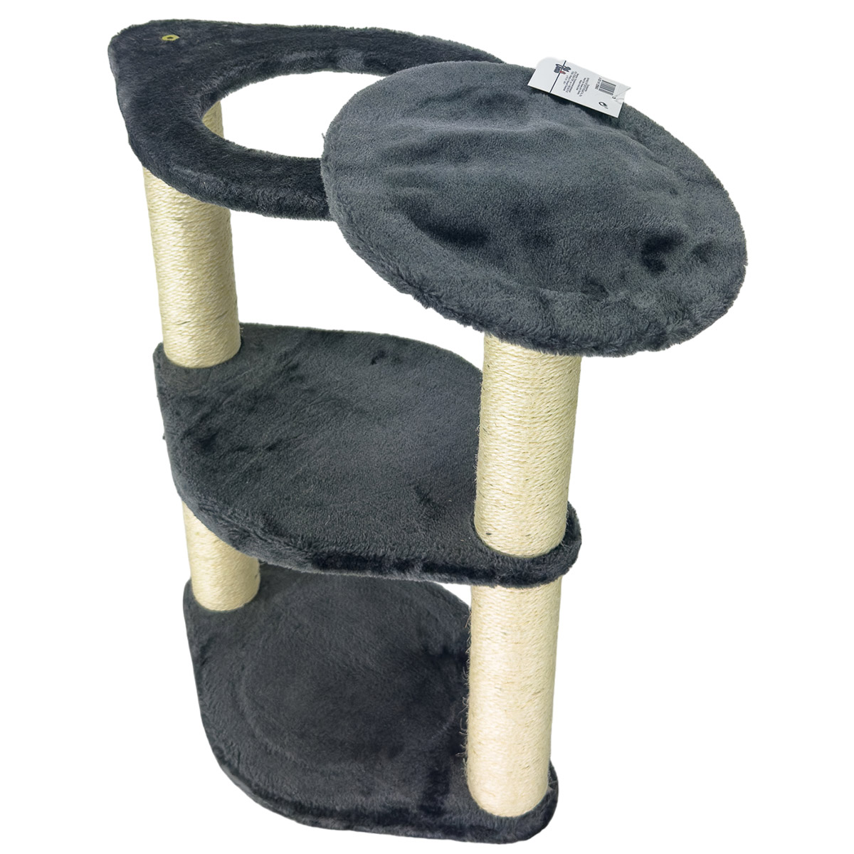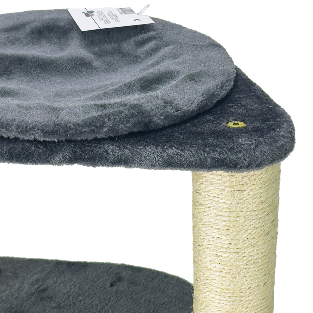 Трехъярусная когтеточка-лежак - это прекрасная обзорная площадка для пушистого любимца. Высокие столбики обвитые плотной, жесткой сизалью препятствуют развитию стресса у животного и чрезмерному разрастанию когтя. Натуральный материал, не оставляет мусора.